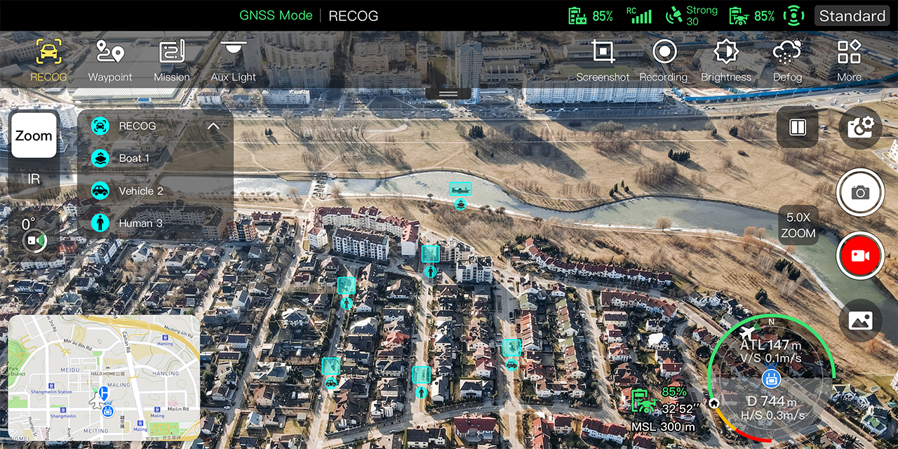 Dzięki wykorzystaniu obiektywów szerokokątnych lub podczerwonych w połączeniu z inteligentnymi algorytmami sztucznej inteligencji i systemem samouczącym się, samolot może automatycznie rozpoznawać i lokalizować osoby, samochody i łodzie, wyświetlając ich położenie na mapie.
