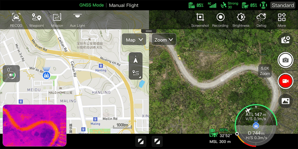 Wyświetlanie podzielonego ekranu: Obsługa światła widzialnego, podczerwieni lub mapy pozwala na jednoczesne wyświetlanie na ekranie dwukanałowego obrazu, zapewniając kompleksowe informacje poprzez porównanie.