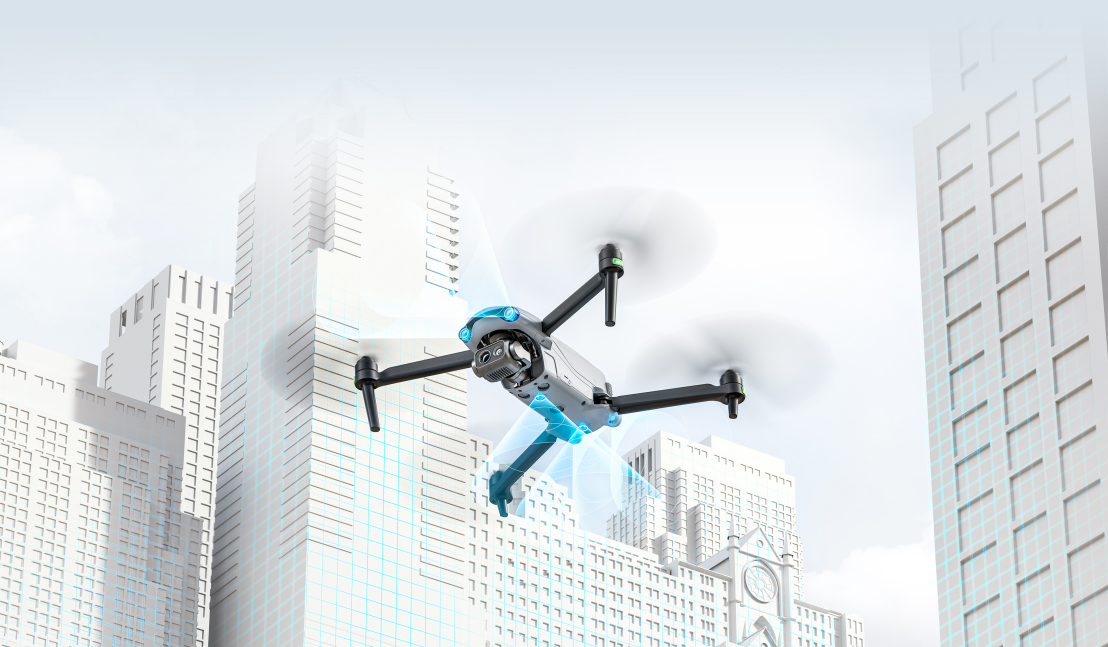 Dron wyposażony jest w szerokokątne czujniki widzenia z przodu, z tyłu i na spodzie, co gwarantuje niezawodne bezpieczeństwo lotu.